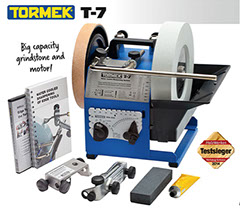 The water cooled slow speed grindstone is in harmony with the physical laws governing the steel tool. The edge does not overheat and lose it's hardness.